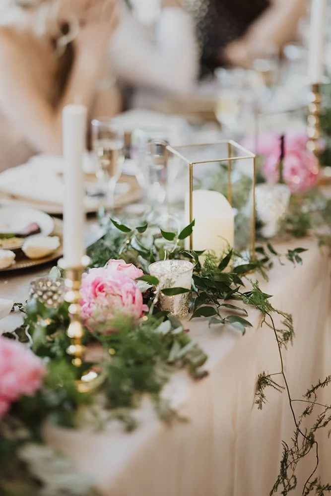 Alongside all essential wedding signs, you'll receive beautifully curated candles, table runners, and lanterns to adorn your reception tables, sweetheart space, and more. Everything is thoughtfully styled and installed on-site by a lead designer and assistant for an elevated, polished design.